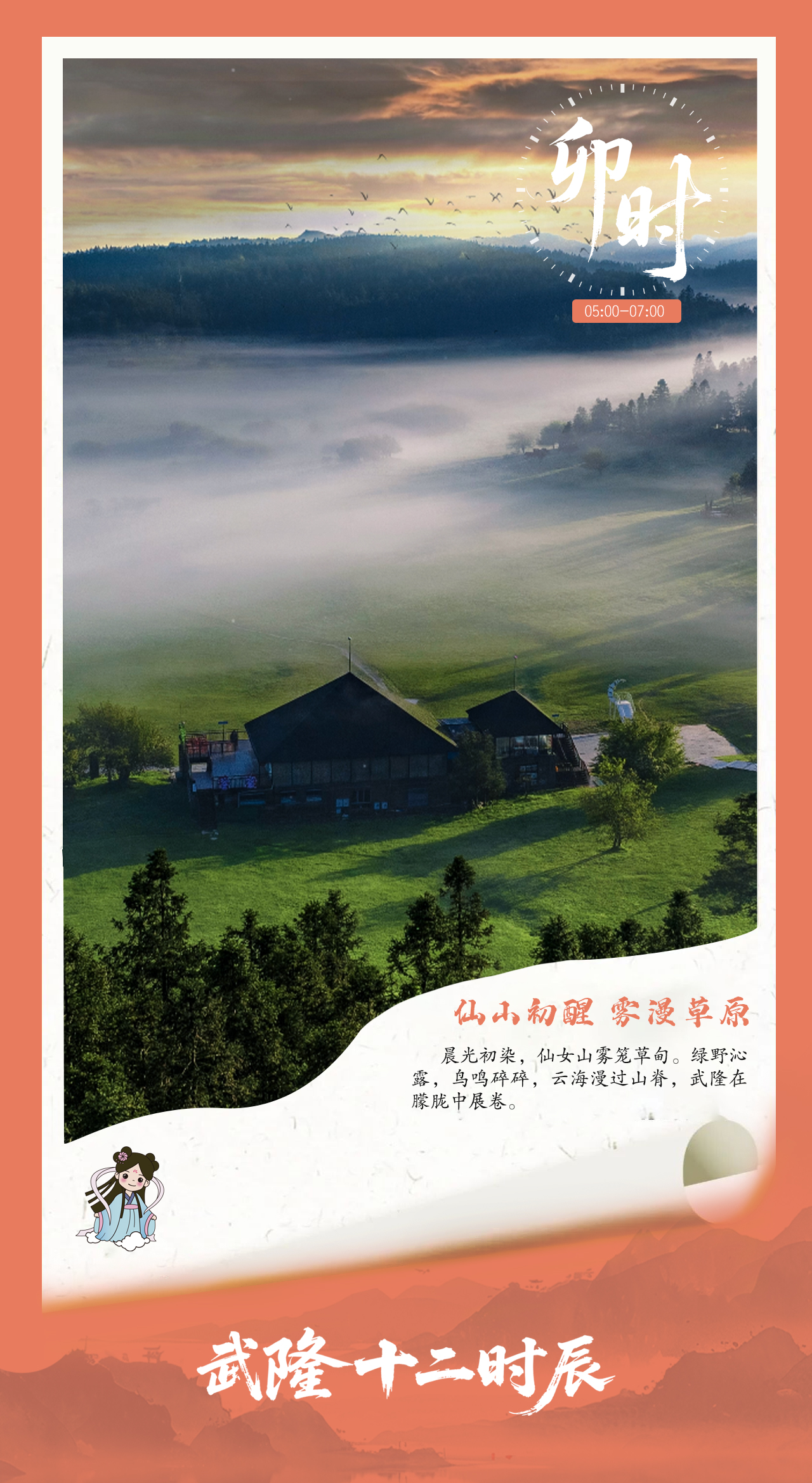 摘要: 卯时・仙山初醒 雾漫草原