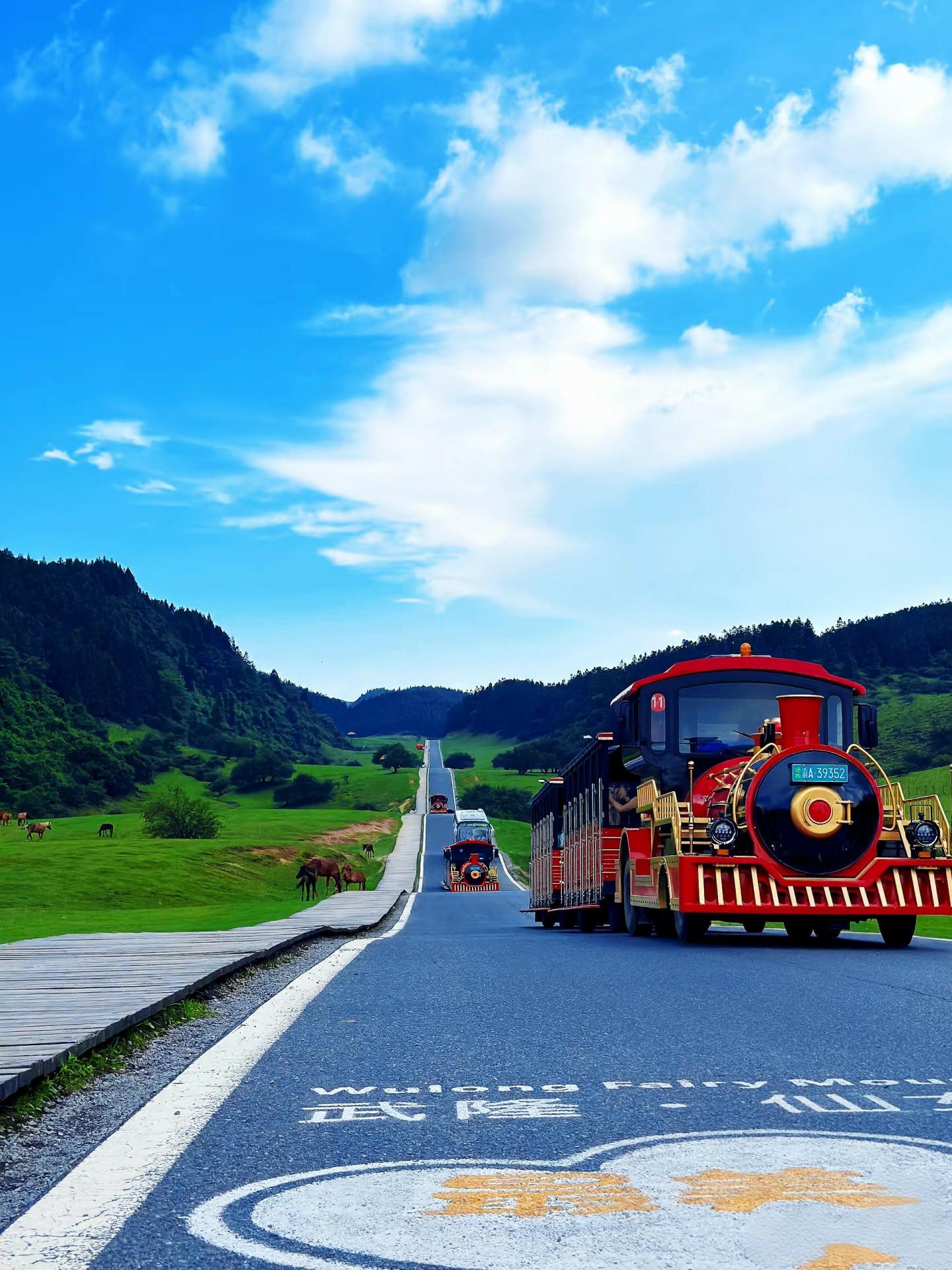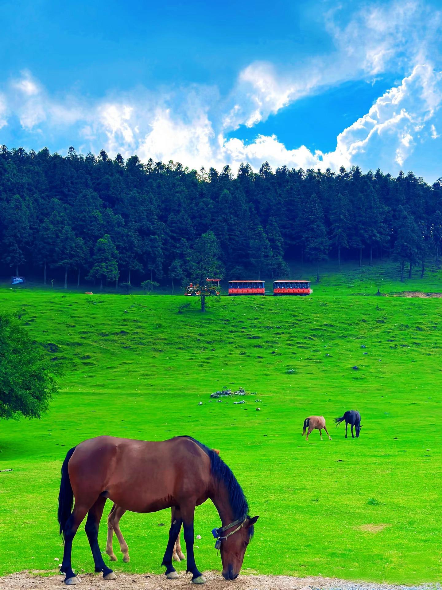 午后探访仙女山草原,沿着波浪公路前行,看红杉林晕染绯红,与悠闲的牛羊共享暖阳;