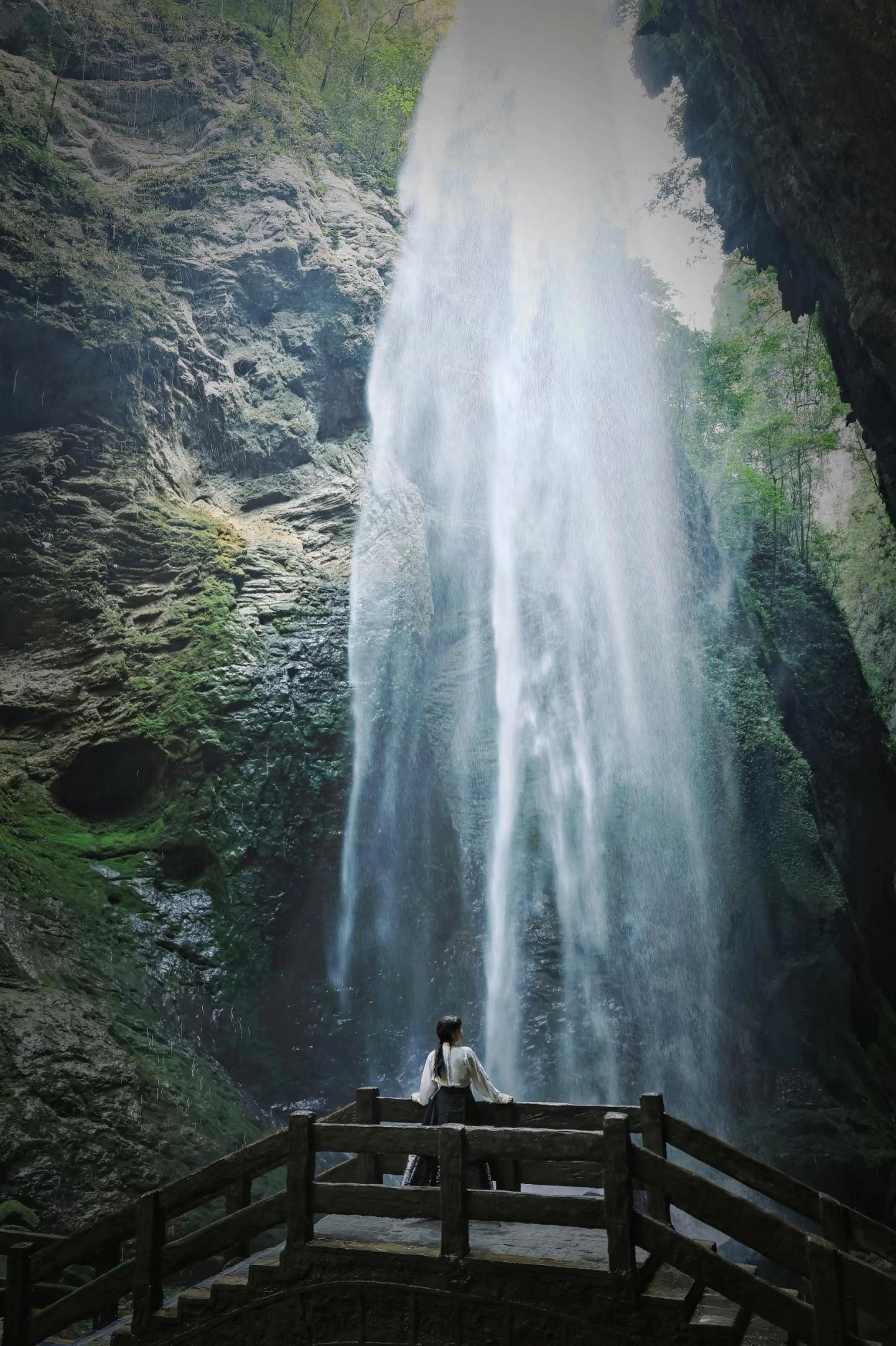 傍晚在《印象武隆》的实景舞台上,感受天生三桥间回荡的千年回响。