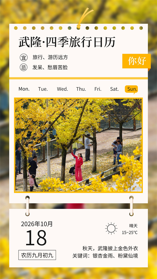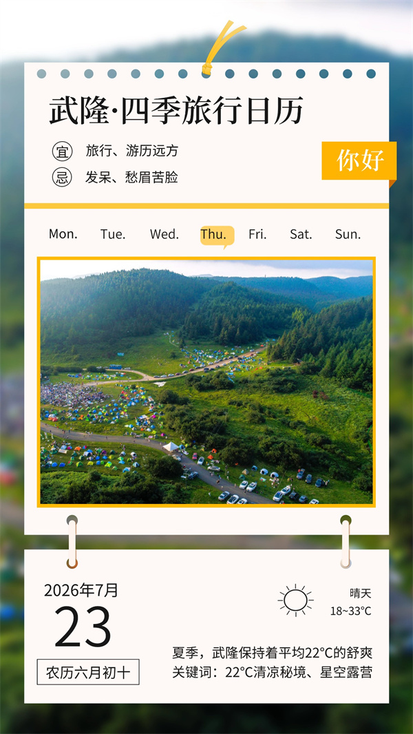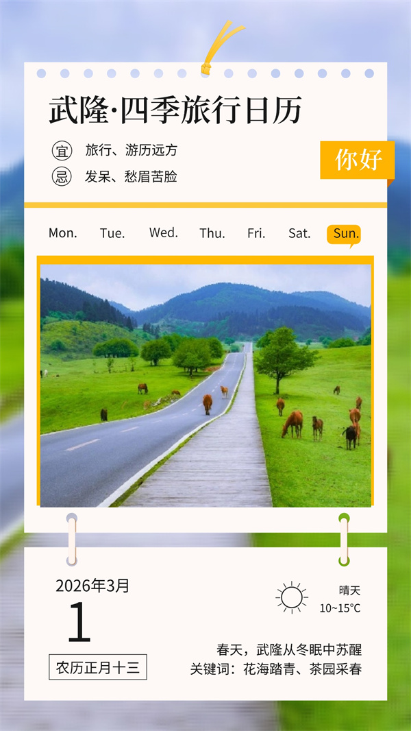 武隆的四季,每一季都是一次全新的邂逅。春天的生机、夏日的清凉、秋季的绚烂、冬日的纯净,在这里交织成一幅完整的自然年轮。收藏这份旅行日历,随时开启你的武隆之旅。
