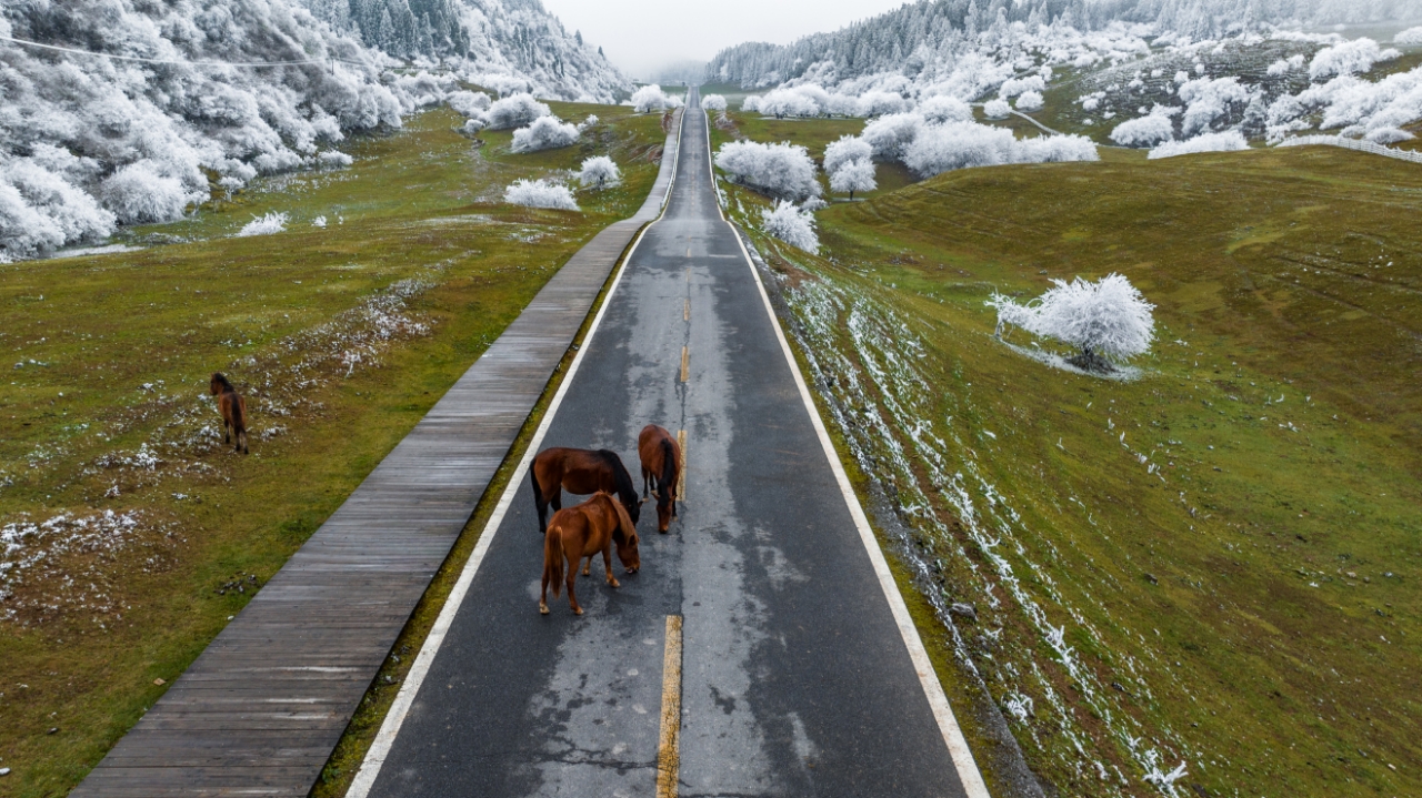 要遇见仙女山的雪,你得先穿过武隆的幽幽深谷,看过天生三桥的雄奇,赏过芙蓉洞的瑰丽,再沿着蜿蜒的山路向上。