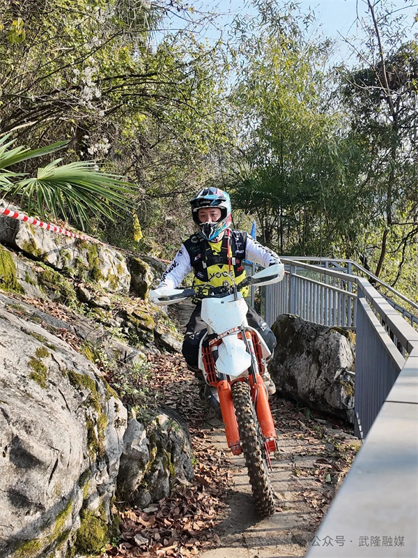 尤其值得一提的是赛事赛道,依托仙女山与喀斯特天坑自然地貌打造全长约8公里,赛道融合砂石路、石板步道、灌木林道与喀斯特岩石路段等多元路况,高低落差达110米,对车手控车技术、耐力与应变能力,都是一场极大的考验。