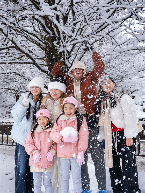 赏雪、玩雪的游客络绎不绝,拍照打卡的欢声笑语与孩子们在雪地里的嬉戏声交织在一起,汇成节日最美的乐章。