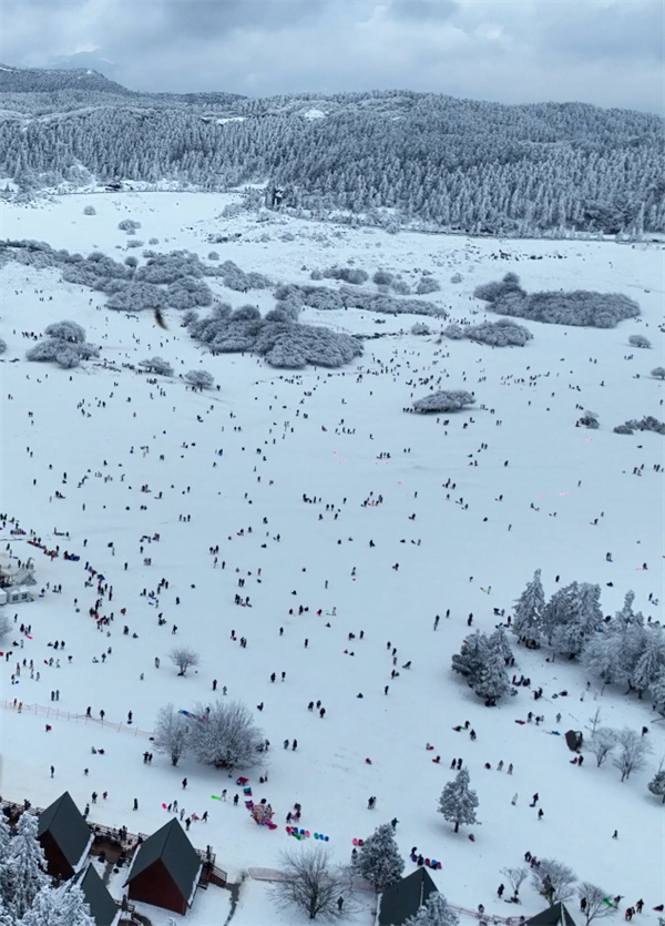 1月2日,旧雪未融,新雪又至。仙女山在一片银白中轻轻醒来,像给每位远道而来的您铺上一条柔软的迎宾毯。