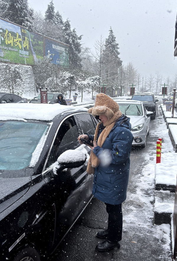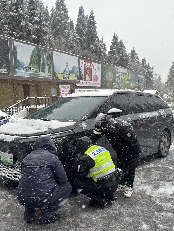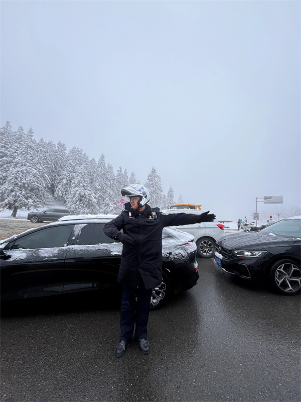尽管雪花纷纷扬扬,但武隆景区的交通秩序却井然有序。交警部门提前部署,全员上岗,加强对景区周边道路的巡逻管控。他们不畏严寒,坚守岗位,指挥着车辆有序通行,确保游客能够安全、顺畅地抵达景区。无论是主干道还是支路小巷,都能看到交警们挺拔的身影,他们用专业和耐心为游客的出行保驾护航,成为了冰雪中一道温暖而坚定的风景线。