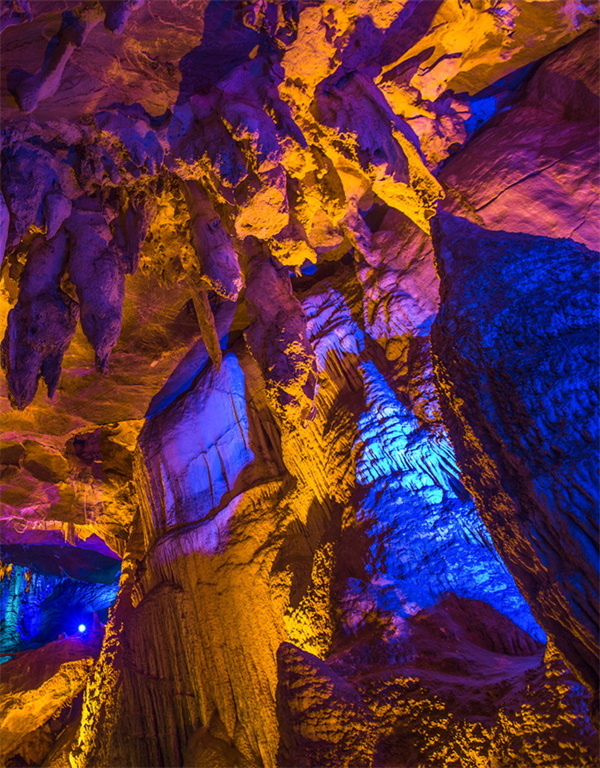 芙蓉洞宛如一座地下艺术宫殿,洞内的钟乳石形态各异,色彩斑斓。在灯光的映照下,这些钟乳石闪烁着迷人的光芒,仿佛是大自然精心雕琢的艺术品。同学们沿着蜿蜒的步道缓缓前行,欣赏着各种奇特的景观,惊叹于大自然的鬼斧神工。乘坐索道缓缓上升,俯瞰芙蓉洞的全貌,更能感受到它的雄伟与神秘。