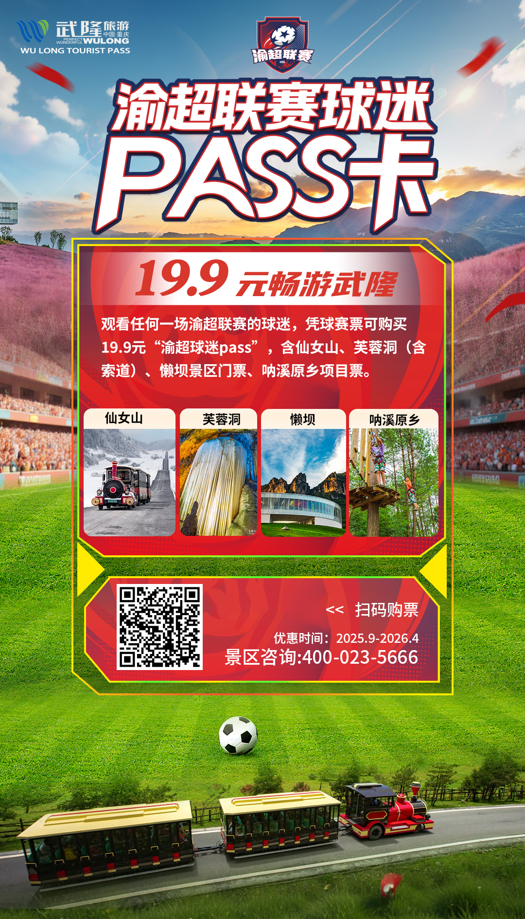 热血,不只在哨响之间;风景,永远在奔赴的路上。收下这份来自山水的邀请,在为家乡球队、也为中国足球的未来奋力呐喊之后,别忘了赴一场武隆的自然之约。让我们以足球为名,共赴一场青春、拼搏与山水诗意的浪漫相遇!