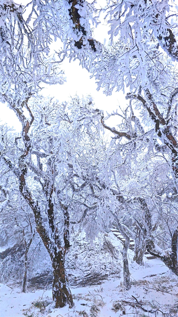 南方雪景天花板在此!雾凇满山像开了滤镜,晴天下蓝白分明,阴天时仙气飘飘~眼睛和手机内存同时被治愈。