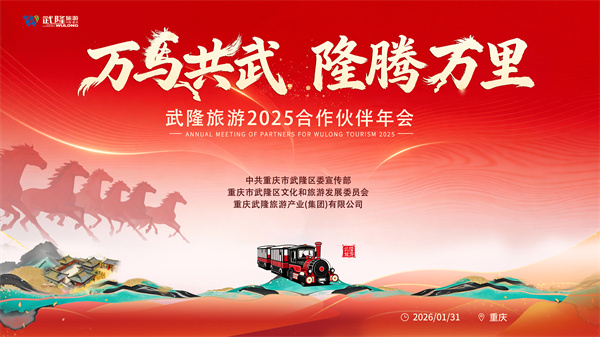 马跃山河启新章,同心逐梦赴荣光!1月31日,“万马共武 隆腾万里”2025年武隆旅游合作伙伴年会,在重庆万垚酒店盛大启幕,以文旅为媒,聚同心之力,赴共赢之约。