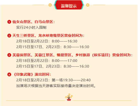 春节期间的武隆,还有积福.武隆福气PASS卡、遇福.遇见浪漫童话、赛福.雪地新春派对、见福.踏江湖见万福、送福.好运武隆五大主题活动轮番上演,精彩不断,欢乐不停!