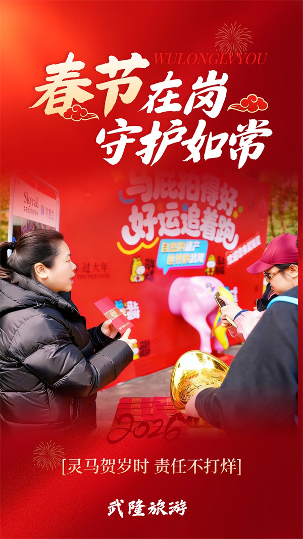 随处可见“心”服务,武隆旅游用实力“圈粉”无数。春节假期已悄然过半,抓住假期余额,逃离都市喧嚣,避开人流高峰,来武隆尽情领略这份独特的魅力与活力。