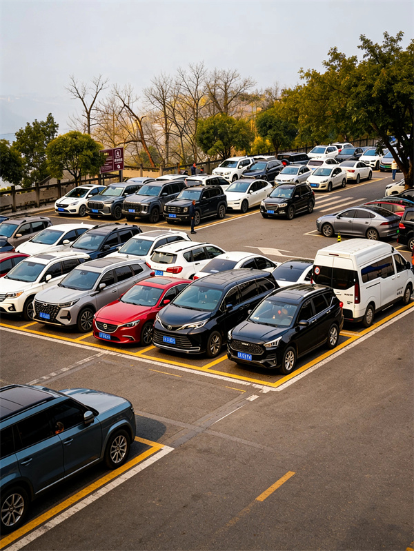 为应对车辆增多的情况,景区设置多个临时停车场,提供充足车位,并通过合理规划停车区域,尽管游客众多,车流量激增,但车辆均有序进入停车场,整齐停放,井然有序,形成一道和谐美丽的风景线。