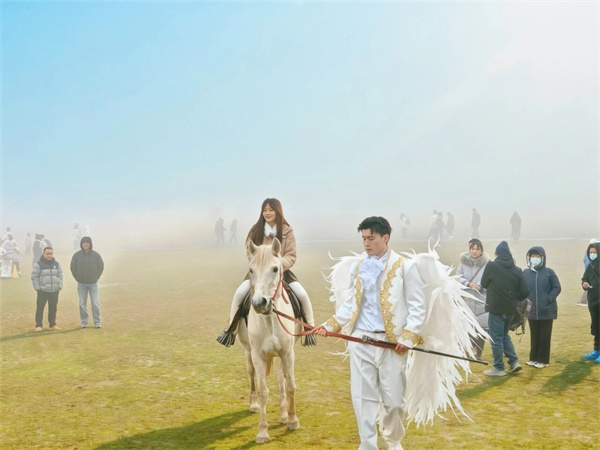 遇福:仙女山上,白马王子玫瑰赠佳人,黑马骑士互动送欢笑,浪漫满分。