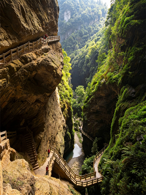 走进天生三桥,领略“三桥夹两坑”的喀斯特地貌奇观。于天龙桥下“点赞”,在青龙桥下“手握大刀”摆酷,在神鹰天坑观“雄鹰展翅”,在“天福官驿”重温影视场景,在喀斯特峡谷间体验“峡谷骑行”。