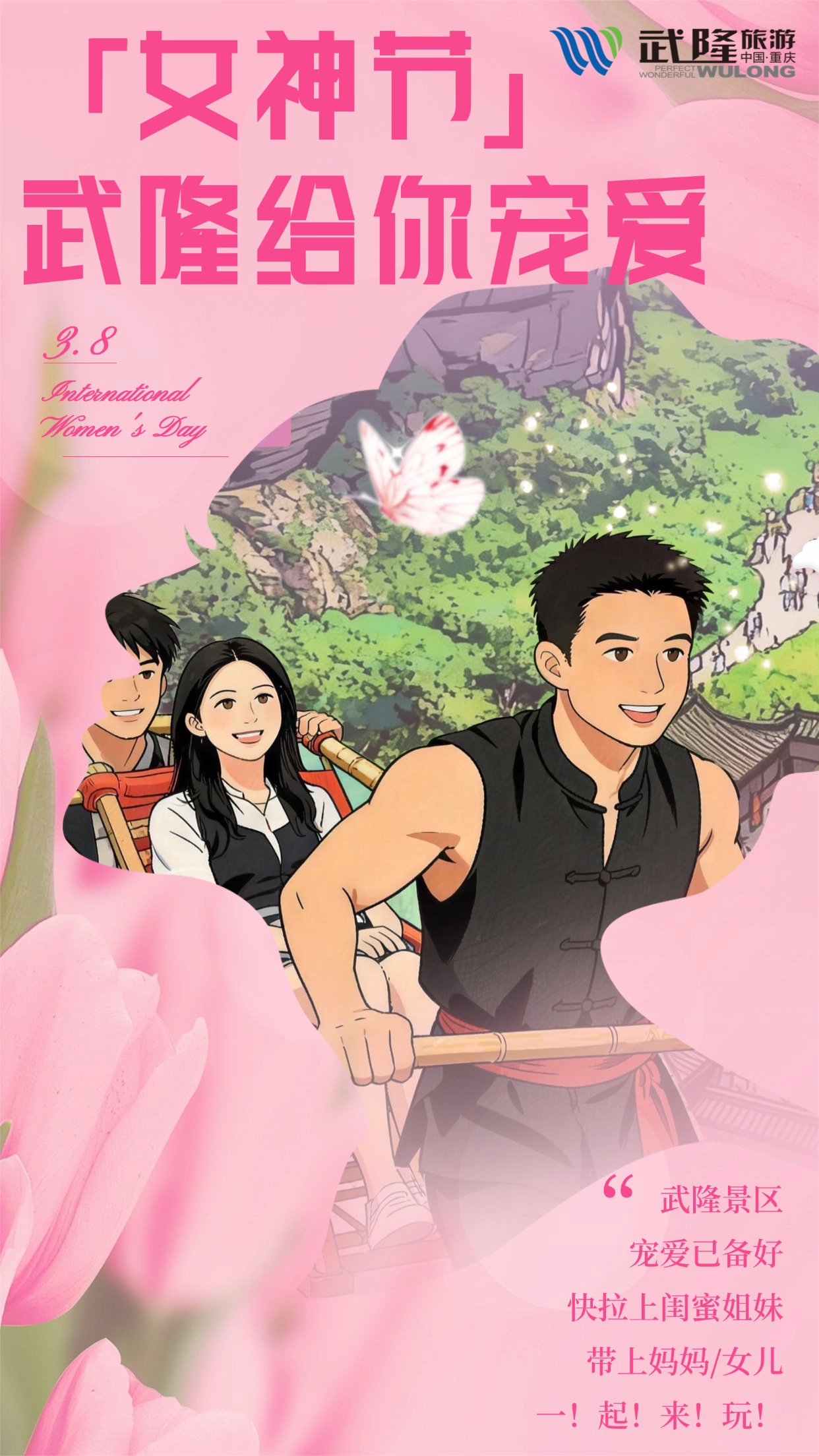 春风有信,花开有期。在这个属于所有女生的日子里,武隆景区精心准备了一场盛大的宠爱——峡谷里的“显眼包”轿夫、草原上的仙女变装、溶洞里的童年游戏……全都为你而来!