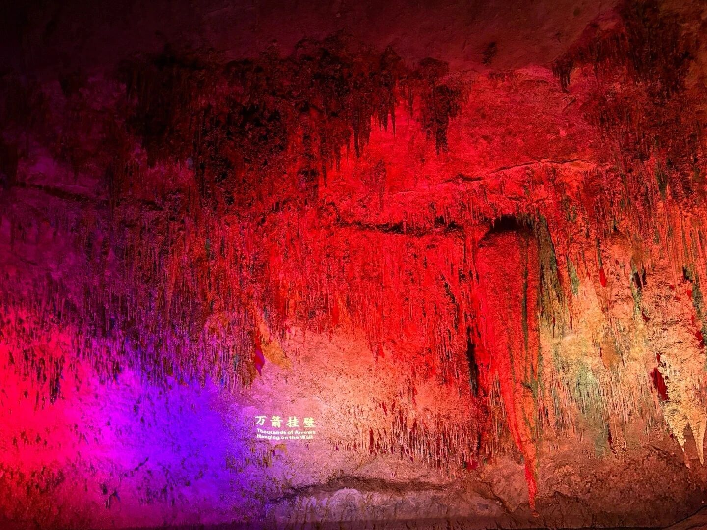 巨幕飞瀑雄踞芙蓉洞奇观之首,与珊瑚瑶池、犬牙晶花、石晶花、石笋等众多沉积形态共同构筑起令人惊叹的世界级地质景观。这座形成于120多万年前的洞穴,汇聚了70多种沉积物类型,是全球种类最丰富的洞穴之一。