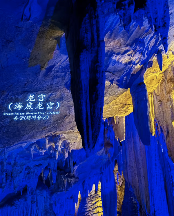 走进“地下艺术宫殿”,看亿年钟乳石在彩灯下流光溢彩,感受喀斯特的神奇造化。