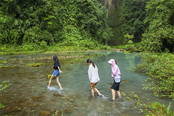 延沧河静静流淌在峡谷之间,两岸茂林修竹,郁郁葱葱。谷底是清凌凌的河水,碧波顺流而下,水声潺潺,像春天在轻声细语。