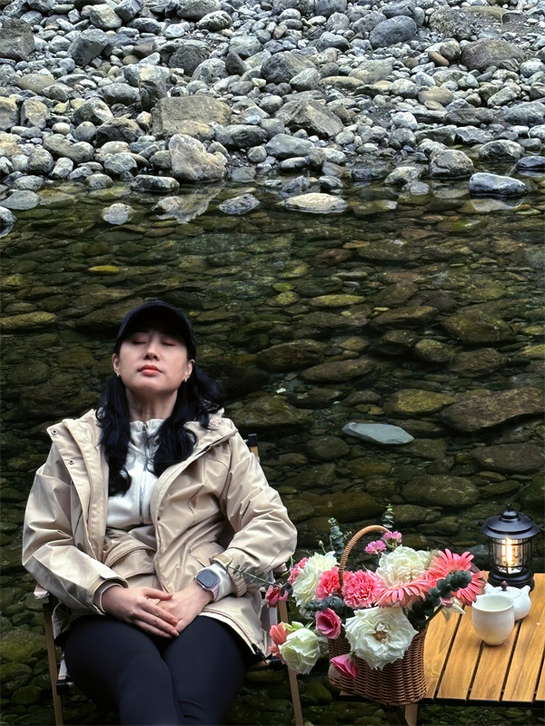 找到一片开阔的河滩。溪水从脚边流过,清澈见底,阳光透过峡谷洒下来,暖暖的,正适合铺开野餐垫。选一处平整的石头,摆上带来的水果、点心和饮料。偶有春风拂过,带着峡谷里草木的清香,比任何空调都舒服。