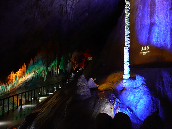 在亿万年的时光沉淀中,大地深处藏着一座地下艺术殿堂——芙蓉洞。这里钟乳林立,石幔如帘,而其中格外引人注目的,莫过于那根被誉为“定海神针”的传奇石柱——五龙柱。